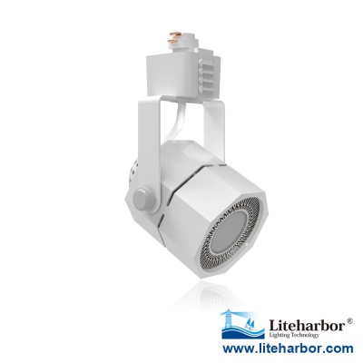 Line voltage die cast aluminum octagonal designer fixtures with GU10 light source. Yoke/Swivel provides full adjustment of light source for special aiming. Dual tightening knobs assure secure lock on vertical angle position.