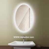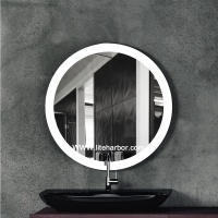 Features a polished edge mirror that hangs on a white powder coated stainless steel backing. The classic round shape has a 2 in. wide frosted inner circle which bright LED light shines through.
