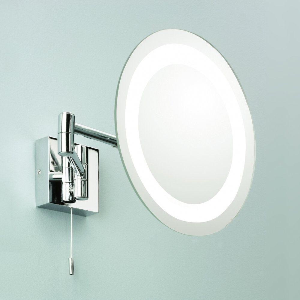 The MRR125 Magnifying Mirror is a great light fitting for any modern day bathroom in homes, apartments and hotels. It has a round front that sits on a polished chrome stem and base. Ideal for shaving and other daily tasks, the light is operated by way of a pull cord switch.