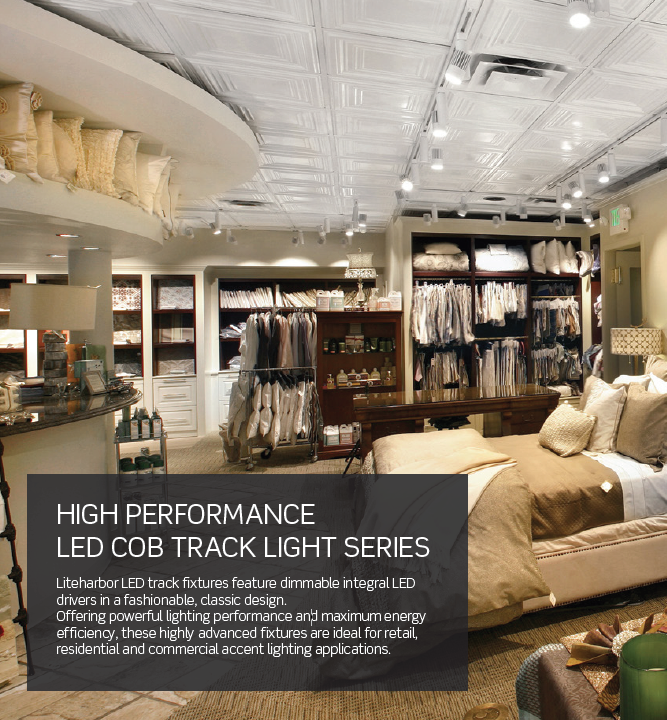 Liteharbor LED track fixtures feature dimmable integral LEDdrivers in a fashionable, classic design.
