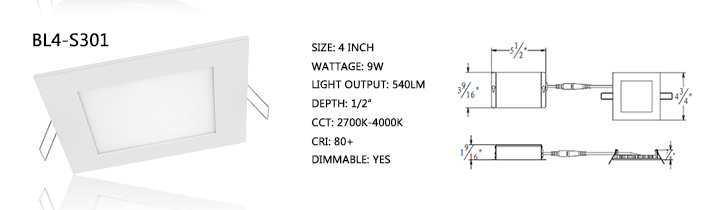 4" Architectural Square LED Recessed Downlight Manufacturer