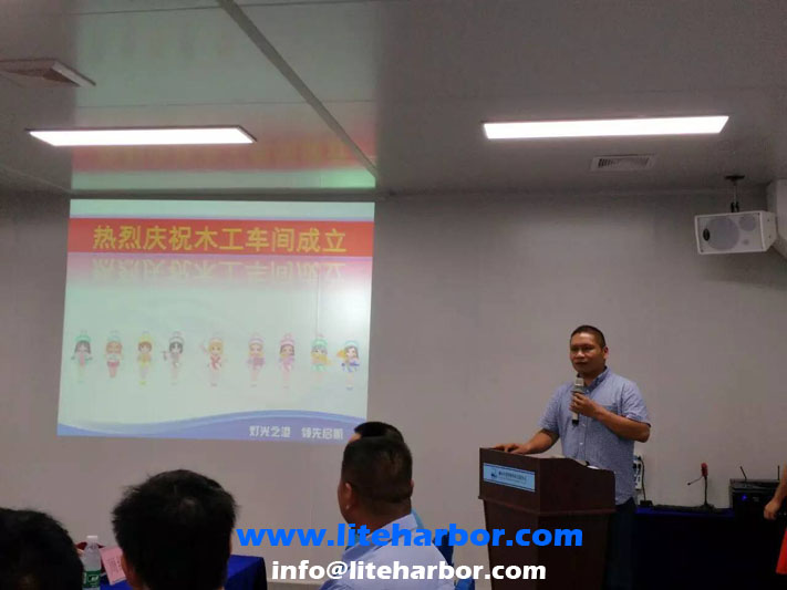 The First, the chairman of Liteharbor Lighting, addressed on the ceremony. A business want to grow and develop, you need to continue to inject new elements, so Mr. Billy appointed Mr. Wu as the head of the carpentry workshop and gave high hopes to believe that the carpentry workshop would be under his leadership to create success.