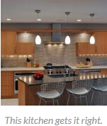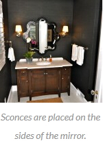 Not only is it important to choose the right light fixtures, but it is also important to make sure they are placed in a room effectively. For example, in kitchens, many people have a recessed can layout over the entire the room rather than only along the outskirts above countertops or workspaces such as stovetops and sinks. The problem is that can lights don’t put enough light on vertical surfaces (such as walls) where the eyes perceive light, which can leave these spaces feeling cave-like despite all the lights. Wall sconces are also easy to position incorrectly. In the bathroom for example, two sconces should be placed at eye level about 5-6 inches from either side of the mirror to minimize the shadows cast by overhead lights.