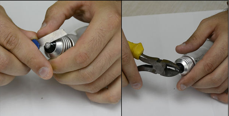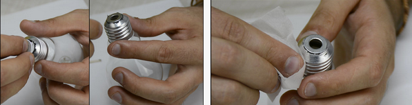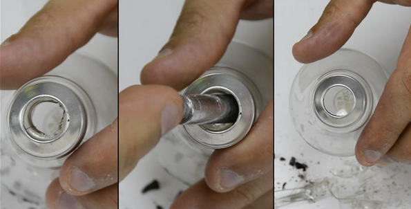 To make the hole bigger, apply downward pressure to the glass with a screwdriver.Wash your bulb before the use.