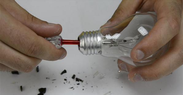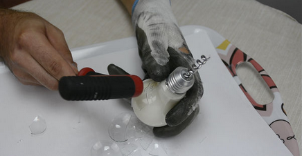 When Instamorph has cooled down, break the glass.Enjoy your light bulb corkscrew.