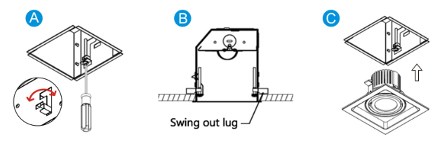 Fix the lamp by locking screw From below the ceiling