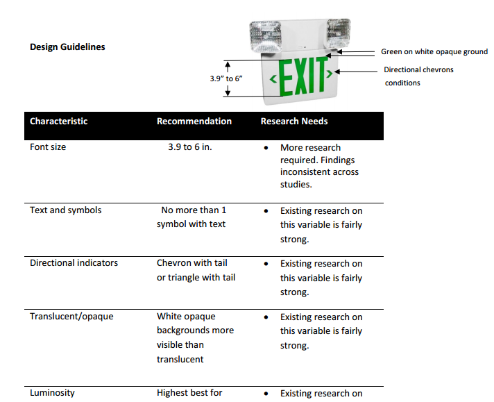 Emergency exit signs should have two modes of operation: lower luminosity for smoke‐free conditions and higher luminosity for smoke conditions